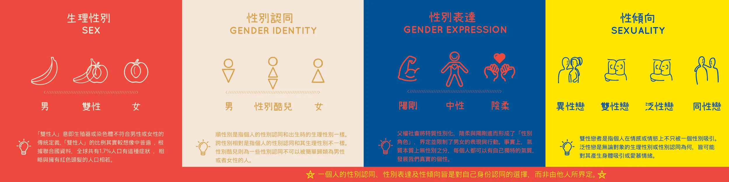 性別知多D 簡介 簡介生理性別、性別認同、性別表達、性傾向的分別、性/別相關的常見問題。 內容 索取表格 備註 最新版本 2019年2月版權所有© 關注婦女性暴力協會。任何人不得在未得批准前自行印刷派發/使用當中之插圖或未有列明出處下引用原文。本會保留追究權利。如有意引述內容可向職員查詢。 性別ACSVAWFebruary 22, 2019單張, 任何人 Facebook0 Twitter LinkedIn0